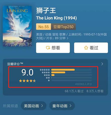 豆瓣上68万人打出了9.0的高分,位列top高分电影第55位。