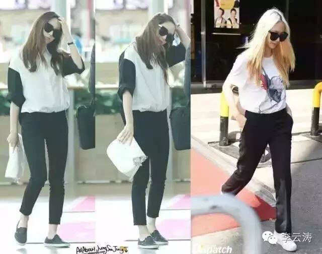 水晶和姐姐郑秀妍两个人是时尚圈有名的时尚姐妹花,妹妹水晶偏爱基本款,但人家就是有把基本款穿出潮范儿!!黑裤子不离身!