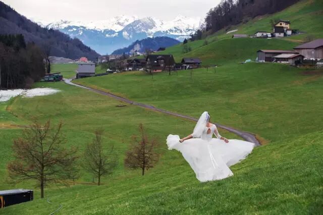 ▲ 望着Bürgenstock礼拜堂,一股对至真爱情的渴望渐晕于胸。看着胡军、卢芳这对恩爱鸳鸯,安娜对真爱充满了期待。她急急换上了早已准备好的婚纱,撒了丫子地跑向礼拜堂,在胡军夫妇的见证下,双手合十,默默许下一个浪漫的愿望。