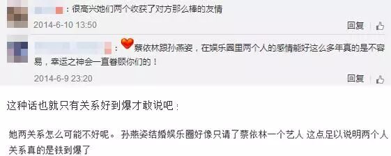 天后孙燕姿可是一点也不担心蔡依林会介意呀,随后也有粉丝留言说:“这种话也就只有关系好到爆才敢说吧。”
