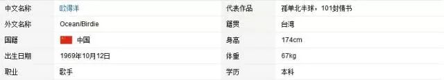欧得洋是一名歌手,出生于1969年10月12日,原名沈溢增(有时写作沈益嶒),2004年以一首《孤单北半球》一举成名,另有作品《101封情书》等。