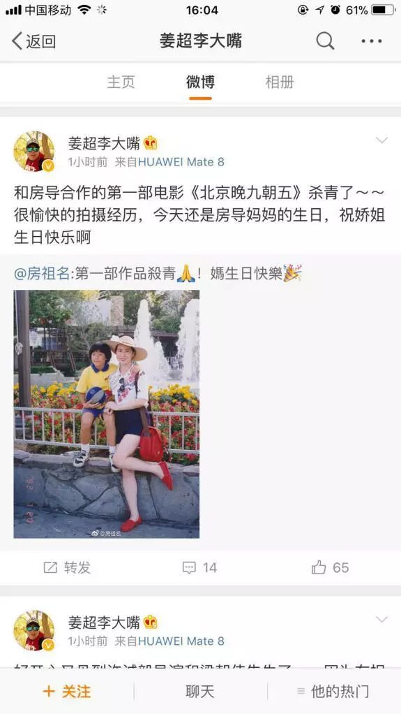 今天是个好日子=林凤娇的生日+房导处女作《北京晚九朝五》杀青,他还发了自己和妈妈的合照。房祖名那时候锅盖头乖萌乖萌的,林凤娇年轻时压箱底的美貌惊为天人啊啊啊啊。
