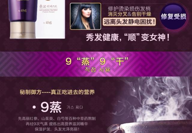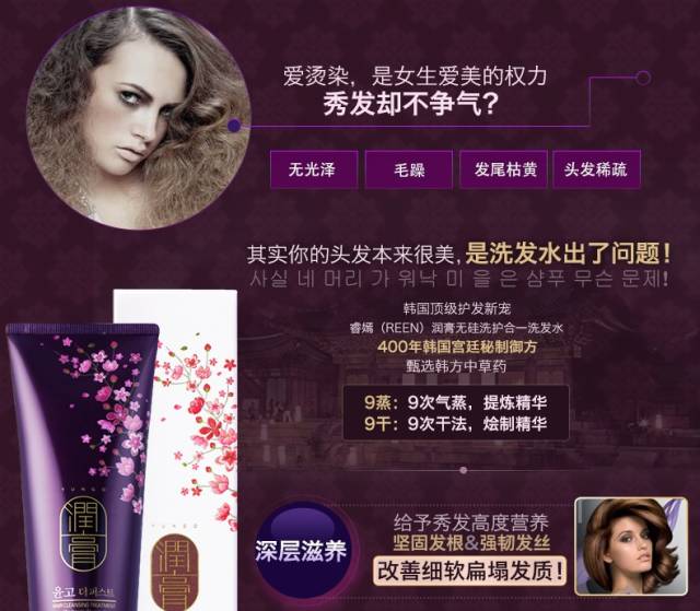 以西印度醋栗,绿豆等成分会让你常年由于染发烫发而损伤的蓬乱毛发恢复健康自然润泽
