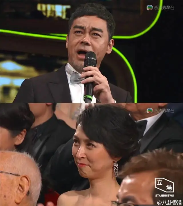 而反观刘青云,在荣获金像奖最佳男主角,领奖时,刘青云感谢了多方帮助,并特别感谢了妻子对他的扶持:“每次我揸住太空船,唔知去左邊度既時候,你總有辦法將我安全帶番來地球。”(每次我开着太空船不知道飞到哪里的时候,你总有办法让我回到地球。)”