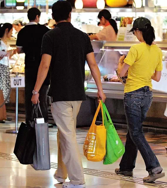 出门购物,购物袋当然是一个都不能让老婆拎的!!