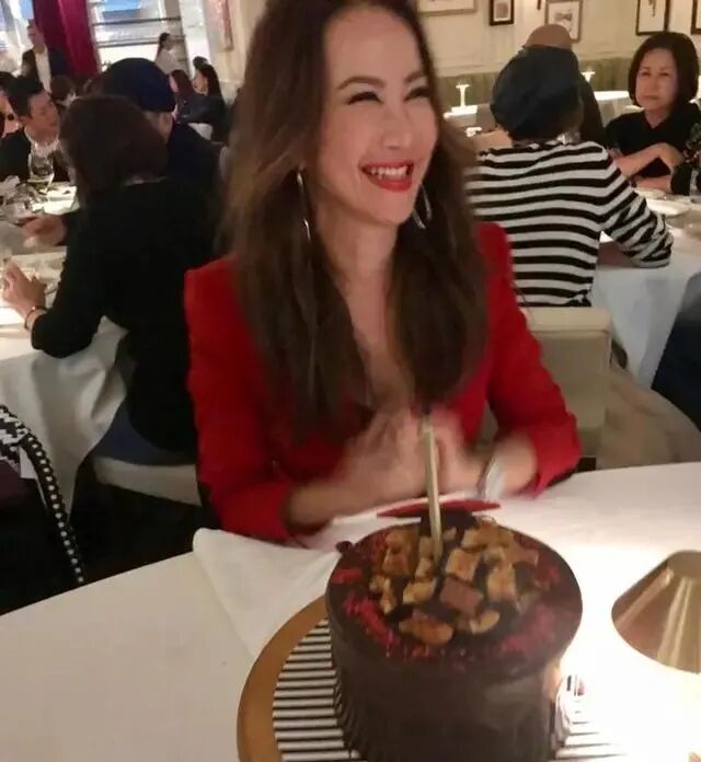 红色西装穿起来实在是太显气场了,这样的颜色谁穿起来都会显得非常的有个性的。笑起来的时候也是会有很多的皱纹,毕竟年纪这么大了肯定是无法避免的,但是还挺真实的。