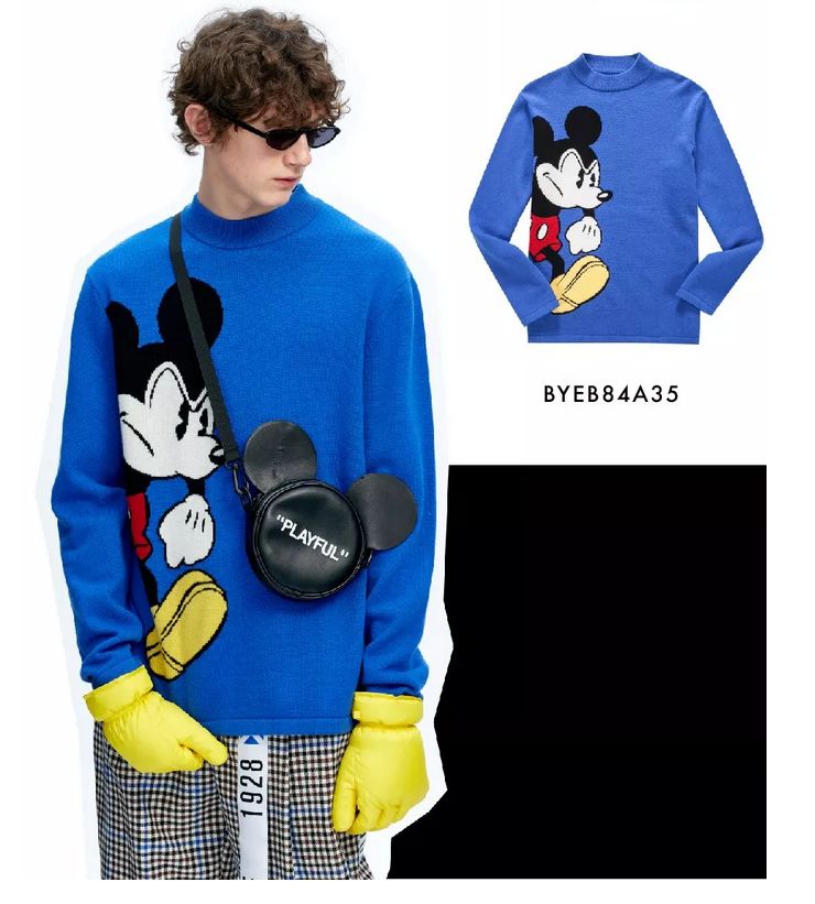 PBM的少年总是面朝阳光的,非常适合干净而明亮的蓝色。巧合的是,Études Studio也以钴蓝色作为代表色,蓝色在法国国旗上占据了三分之一,也是自由的象征。这个系列里蓝色是当之无愧的主色调——米奇在蓝色背景下充分展露自己的各色表情,美式制服元素在此配色下也不同以往,沾染了不食人间烟火的法国男孩气质。