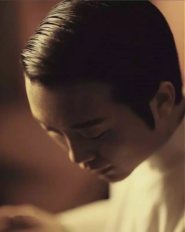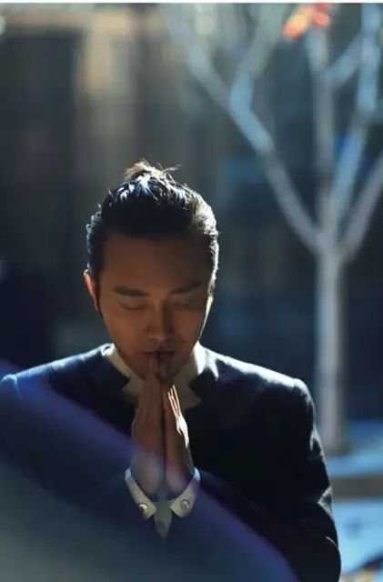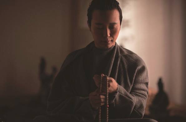 一身青衣素袍,面容瘦削,低眉垂首拾级而上。画面里干净至极的不仅是素白的色调,更是他眼角眉梢的宁静肃穆。