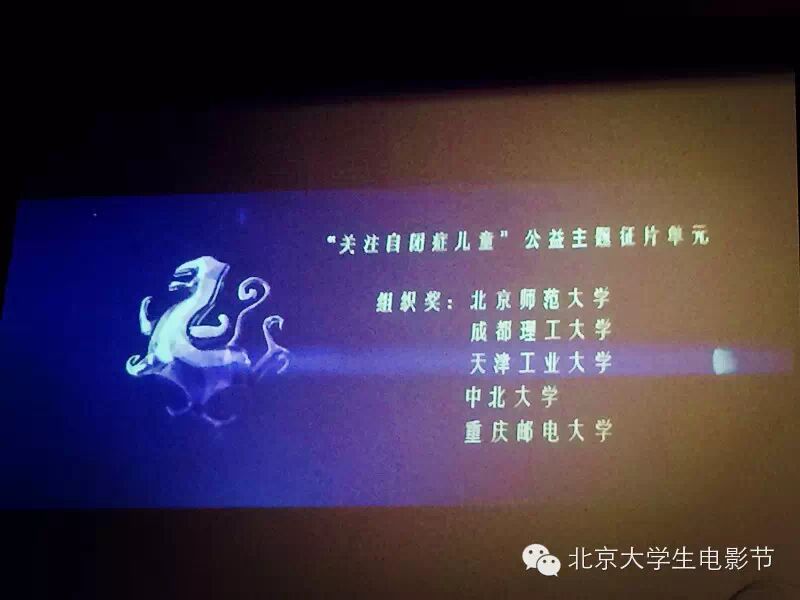 在“星星雨”关注自闭症儿童主题单元中,著名演员汤唯、金泰勇、著名导演薛晓璐、张一白、北京星星雨教育研究所执行主任张忠凯共同开出本单元的四个奖项,鲁迅美术学院徐然《4月2号的故事》获得一等奖,山西传媒学院徐宏《我眼中的阿福》、北京电影学院黄宁蔚《失联》获得二等奖,北京师范大学何逸伦《幸福的鱼》、北京师范大学袁小令《他们》、天津师范大学孟远《夏至》获得三等奖。“最佳组织奖”由北京师范大学、成都理工大学、天津工业大学、中北大学、重庆邮电大学斩获。