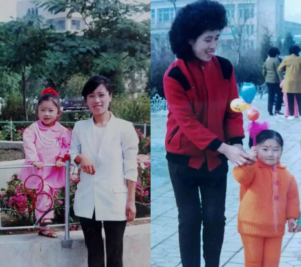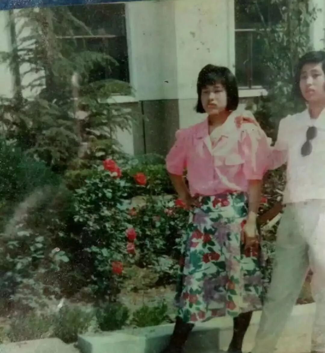 黎子没有说哪位是她妈妈,但小她猜测,应该是右边穿红色上衣的女生吧?红色发带和红色上衣很配,黑裤子+白球鞋,也是经典不出错的搭配法则呀。