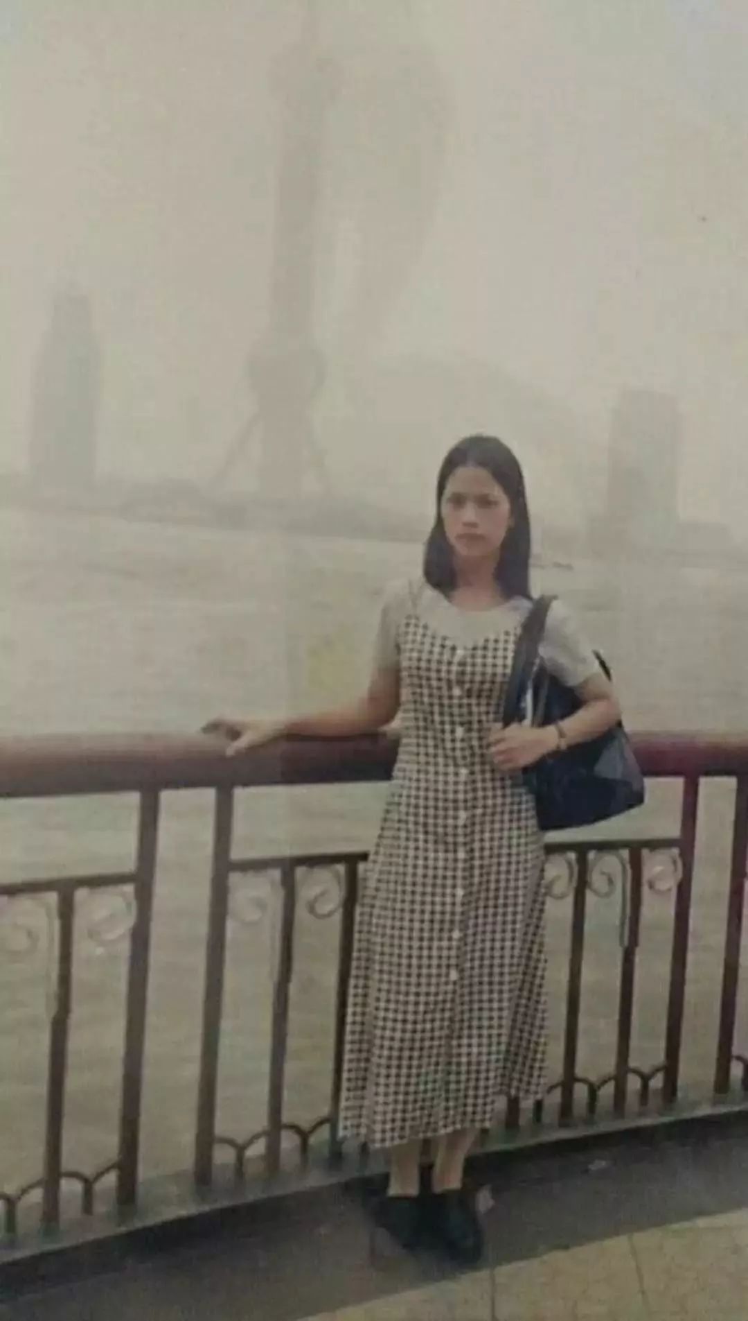 雪碧妹纸的妈妈这不是超经典的T恤+吊带裙搭配吗?要不是背后的外滩看不见高楼大厦,我还以为是2017年的夏天呢。