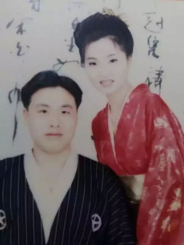 这一对父母超有爱呀,穿着日式和服cosplay,在那个时代应该是很时髦的事情吧?妈妈的皮肤好白,好适合红色哦~