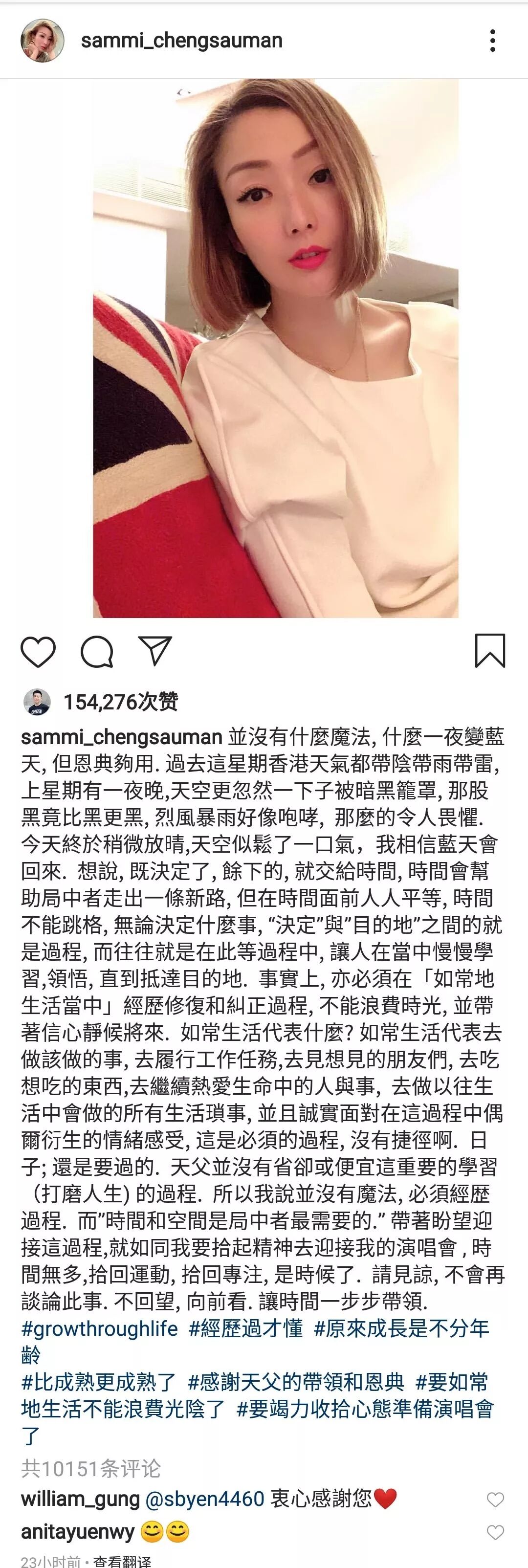 昨日(28日),郑秀文在原谅许志安10天后再度更新Instagram,连发两条Ins。