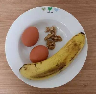 21点:香蕉一个,鸡蛋白1个,蛋黄一个,核桃3个。