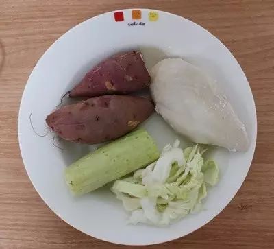 18点:红薯一个,鸡胸肉一块,蔬菜。