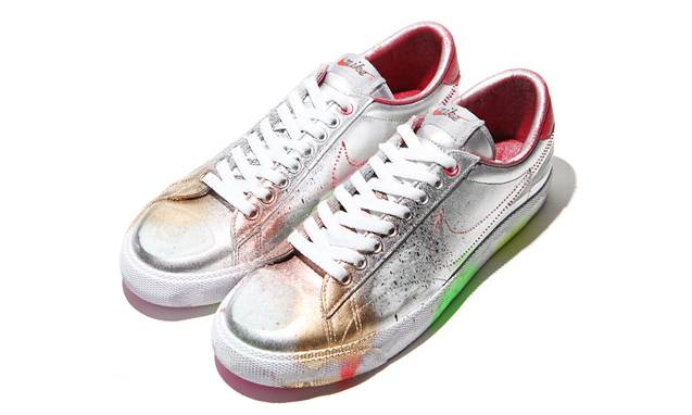 以上一双CLOT x Nike Tennis Classic AC TZ MUSEUM为蓝本,由 MC YAN 亲自涂鸦设计,并在鞋面以及鞋底的创作上尽量保持了相同的色彩与细节,鞋头部位的夜光喷涂 CLOT Logo 是此款设计的一大亮点。