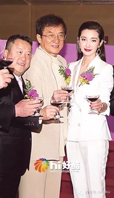 李冰冰(右起)、成龙及曾志伟齐齐做股东,开心举杯。