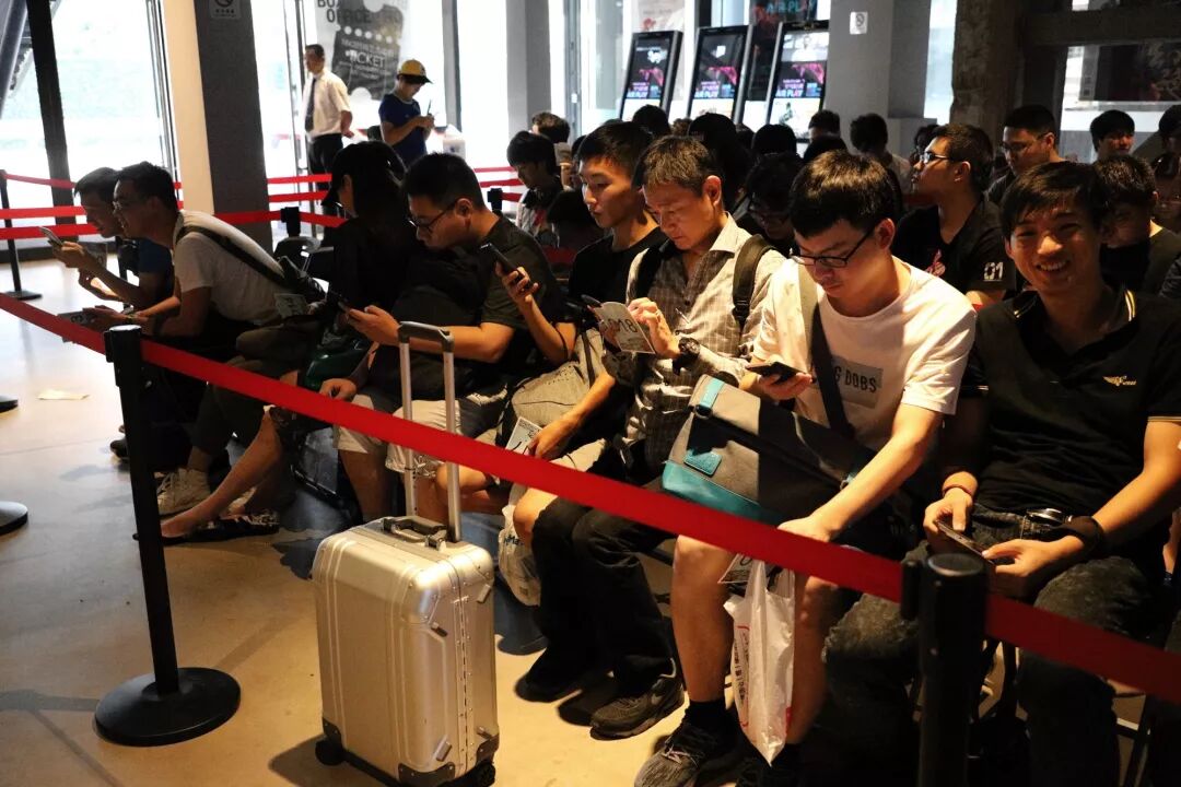 掩不住的小兴奋,但整个排队过程井然有序↓