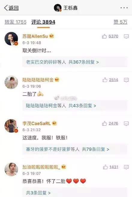 “恭喜恭喜,凑了一个好字!”、“小王子一定跟你一样帅的!”祝福王栎鑫,当年最小的糊糊已经是两个孩子的爸爸了,不知不觉我们也长大了,07年的快乐男声,那些年的一幕幕还不是映入眼前,居然已经过去十年了,时光啊,你走慢一点吧,珍惜当下!