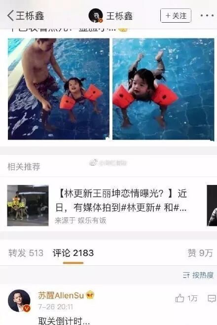 很多网友以及圈内好友也是第一时间送上了祝福,而鹤立其中就是每当王栎鑫撒狗粮晒幸福的时候,好兄弟苏醒都会取关倒计时,果然,在王栎鑫得子的热搜下,苏醒的取关倒计时也妥妥地上了热搜。