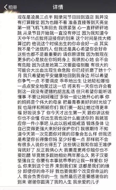 王栎鑫二度当爸,微博喜悦宣布:“母子平安,7斤2两,跟我出生的时候一样重,已经帮大家确认了,肯定一家四口我最丑了,我想说的话,在他出生那天凌晨我都写了下来,感恩。”恭喜恭喜,王栎鑫一女一子正好凑成一个“好”字。