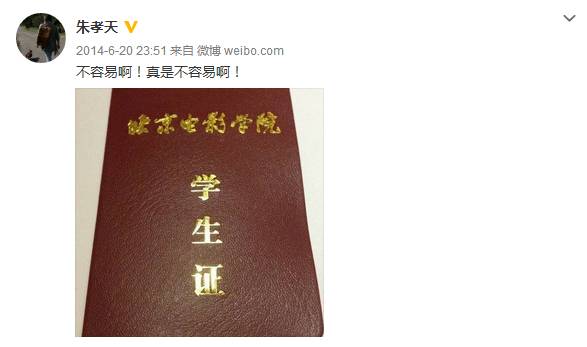 2014年,朱孝天回炉再造,选择到北影就读导演系。