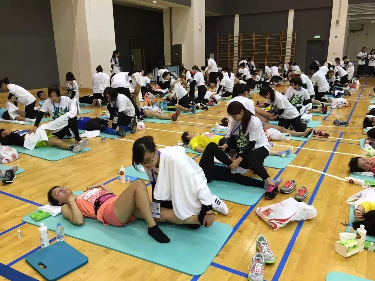 原来,这一次,偌大的海上王冠体育馆最大最用就是给选手们提供了一个宽敞、舒适的赛后拉伸场所。
