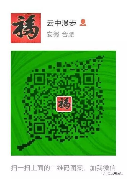 敬请大家关注云龙书画社公众号二维码,联系方式: 18956032981