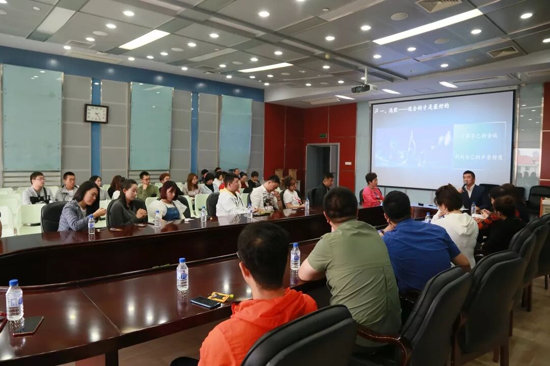 当日,彭杨老师以“让你的歌唱更具风采”为主题,从选歌、音准节奏、气息、情感表达、多人演唱以及舞台表现力等六个方面与主持人们分享了自己独到的见解。