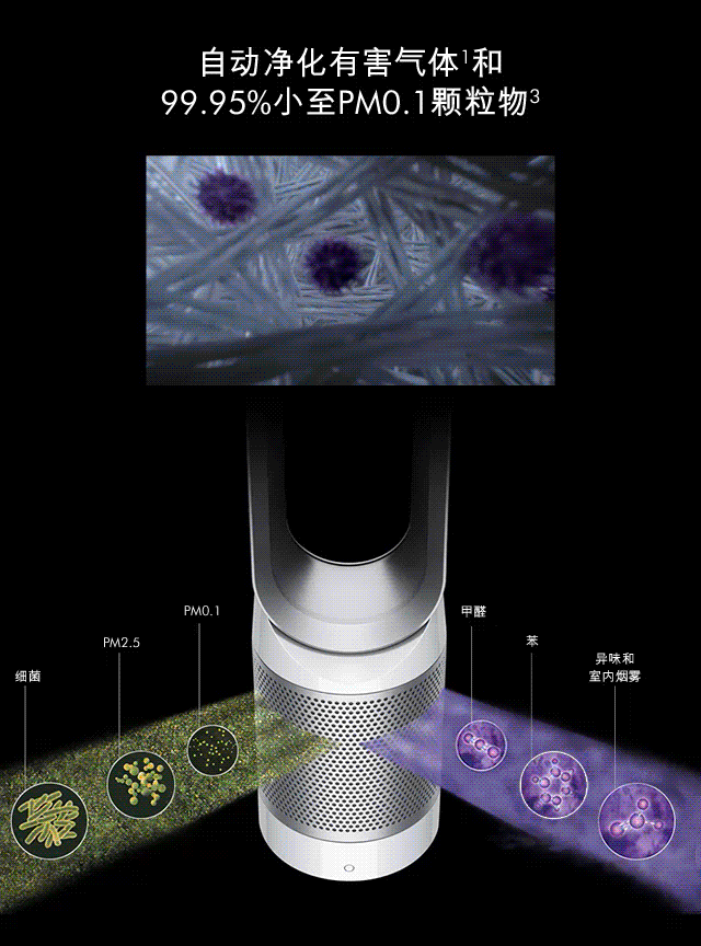 无叶风扇可以说是 Dyson 引以为傲的产品,而空气净化器逐渐成为家居的必备电器,依靠能循环室内空气的 Air Amplifier 倍增气流技术,Dyson 很巧妙的将无叶风扇与空气净化器结合在一起。