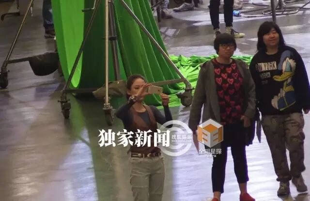印象中陈乔恩是御姐范的,可在拍摄现场却看到的却是这样的☟