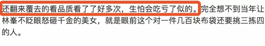 吴千语和林峰在没分手时,论坛上有人形容:她「疯狂购物的场景如同富婆出行一样」