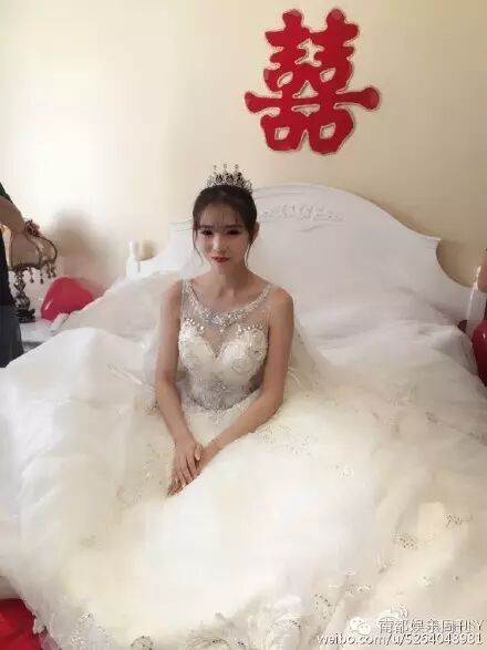 5月21日,10年快男亚军刘心在北京举行婚礼,新娘穿着婚纱容貌艳丽。