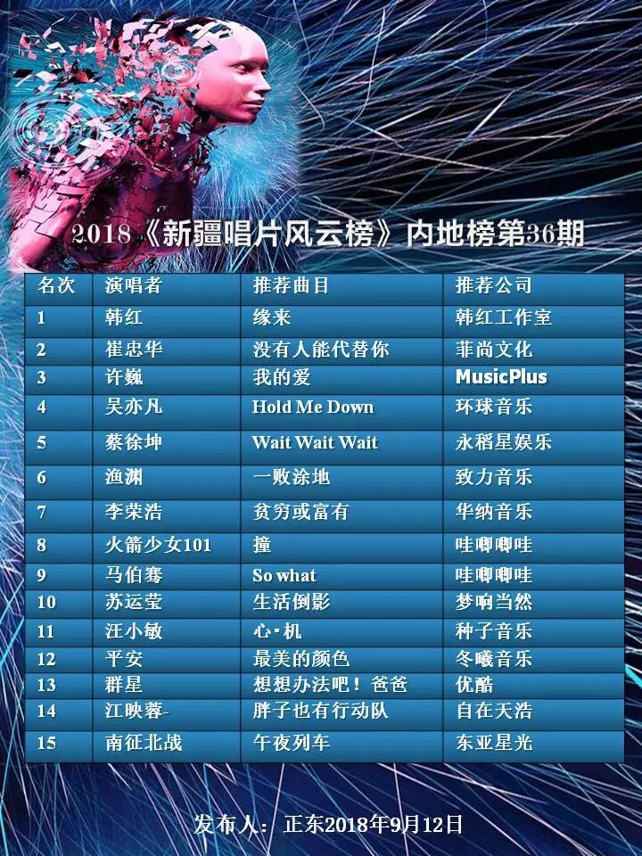 周三❖ 新疆唱片风云榜内地及海外港台榜 ❖