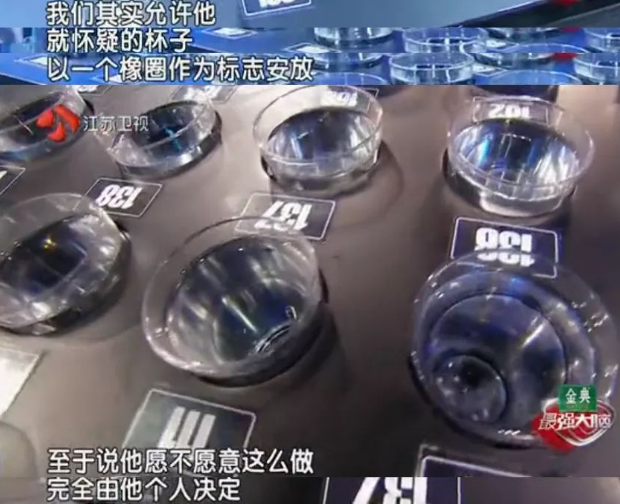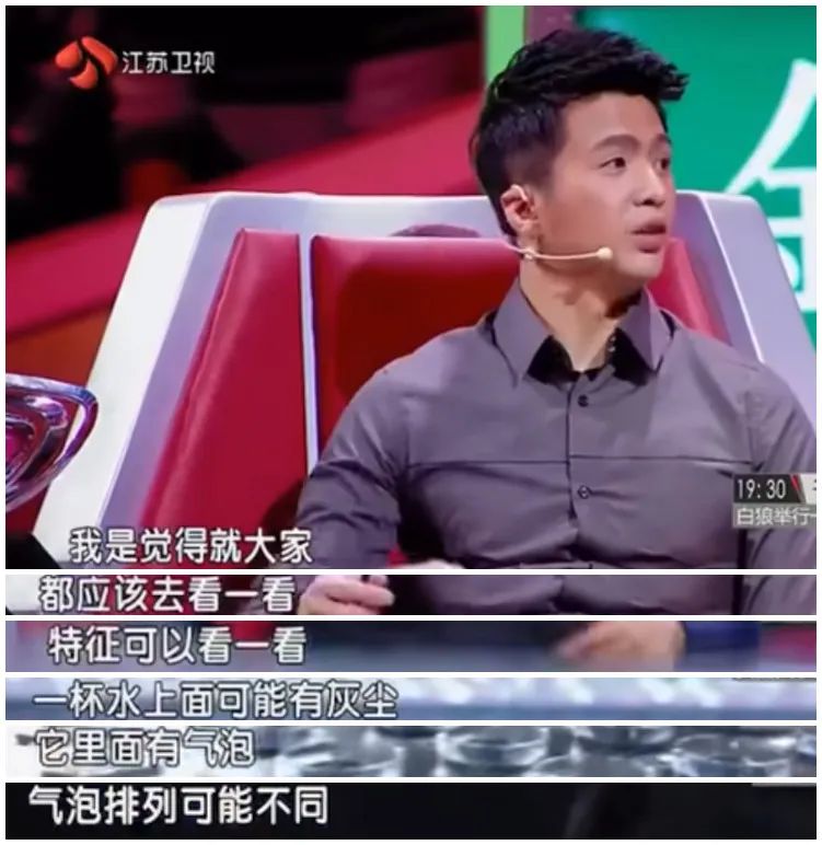 一圈看下来,孟非发现每杯水的气泡数量和排列不同,所以断言王昱珩会通过气泡来判断目标水杯。