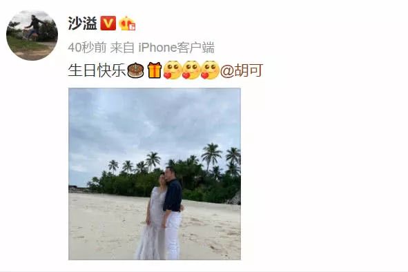 12月1日,今天是胡可43岁的生日,沙溢在微博晒了一张此前两人在马尔代夫旅游海边照,并写道:“生日快乐@胡可”,照片中夫妻俩在海边搂腰相互依偎,老夫老妻平凡幸福感胜过甜言蜜语。