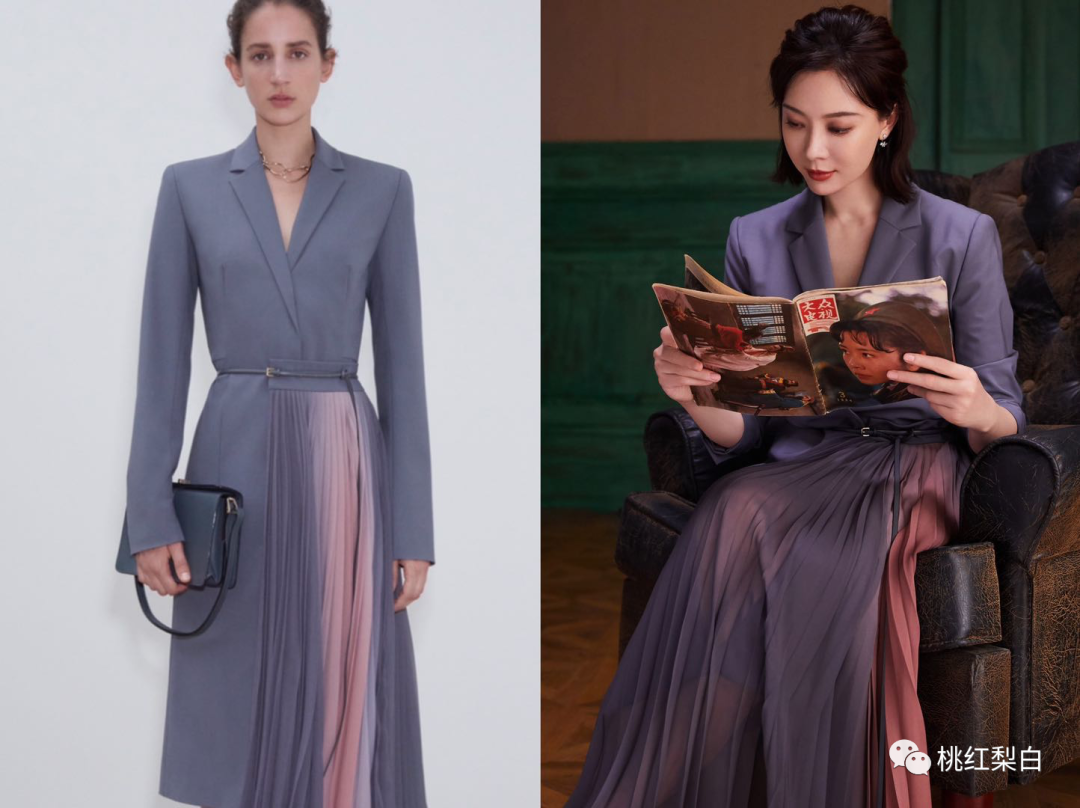 出席金鹰颁奖晚会,选了GIADA这条独特的西装连身裙亮相,上半身硬挺的灰色修身西装,与下半身的宽松百褶裙做搭配,是柔美又不缺气场的一身了。