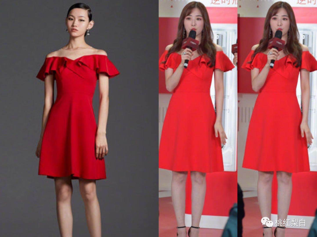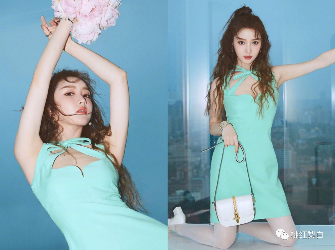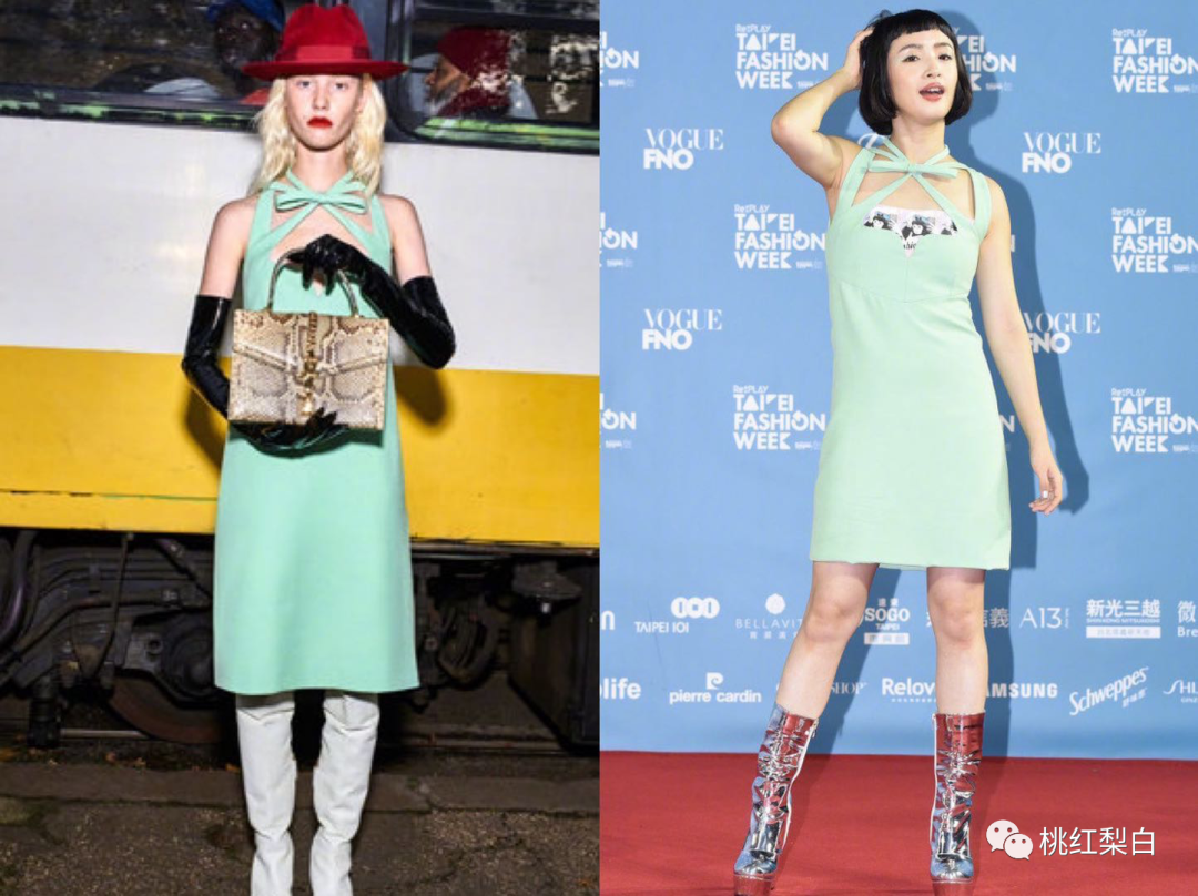 明明这件薄荷绿的Gucci小裙子,在别的女明星身上还挺美丽啊: