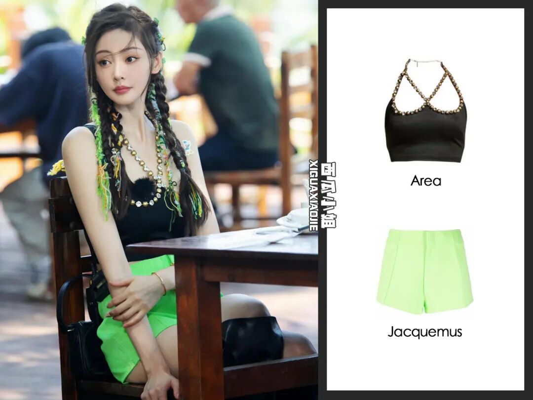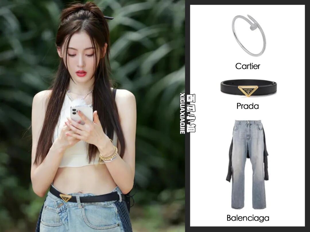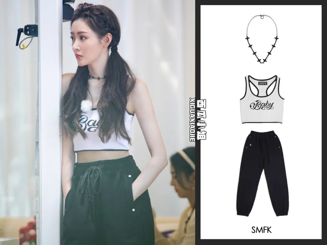 日常造型里,她走的是甜酷辣妹风格,马甲线和手臂线条都很明显。或许没有漂亮的小裙子那么惊艳,但是目光还是忍不住被她吸引。