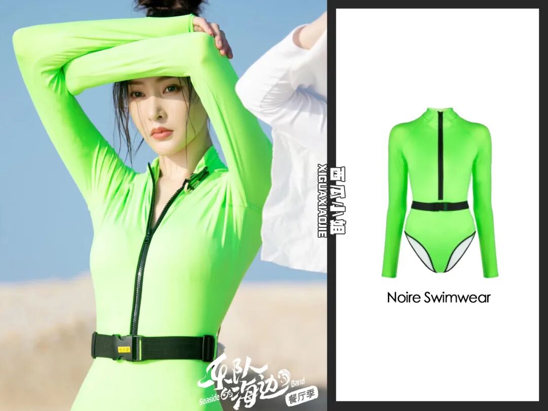 她还有一件荧光绿泳衣,一丝不露,性感全靠曲线,原本紧身包裹的设计,被她穿得好像还有余地。