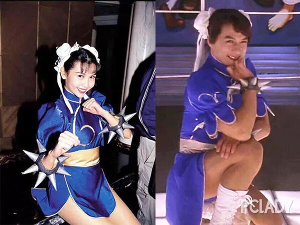 《超级学校霸主》春丽,cosplay起来萌感十足,俏皮可爱~右边的成龙大哥你确定不是来搞笑吗?有种买家秀和卖家秀既视感。