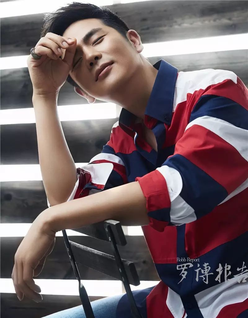 西装、长裤、条纹衬衫:Ermenegildo Zegna