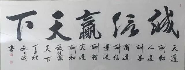 该歌是应邀,为天佑公司打造的企业形象歌曲,歌曲激情奔放,满满的正能量。天佑公司老总一直奉行“诚信赢天下”的理念,家里、办公室都挂着这幅字。其人胸怀坦荡、志存高远,具有狭义之风。为此,特以这幅字为题创作了这首具有一定感染力的《诚信赢天下》,当然歌曲也未局限在狭小范围,而是意在感染更多的仁人志士,个个讲诚信、存狭义,人人能因此做大做强。另外,相信在不说这是一首企业形象歌曲的情况下,很多人还听不出来吧。