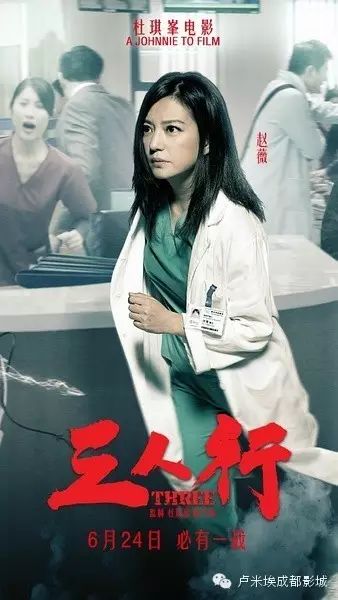 另外,现场公布的先导海报展示了生死一瞬间的医院众生相,整个画面警医匪元素丰富,却又犹如时间定格,尽显神秘。桌椅、医学器材漫天纷飞,枪火纵横爆炸近在眼前,各方剑拔弩张却错落有致的经典站位,流露出杜琪峯专属银河味道,海报中《三人行》“必有一战”的宣传语也紧扣“三人角力”主题,令人备受期待。赵薇透露此海报展现了电影的高潮段落,钟汉良称画面中的他是“为逃出去而不择手段最真实的状态”。杜琪峯则爆料这张海报再现了“每一个人都是慢动作长镜头的状态,整个镜头长达10分钟”。