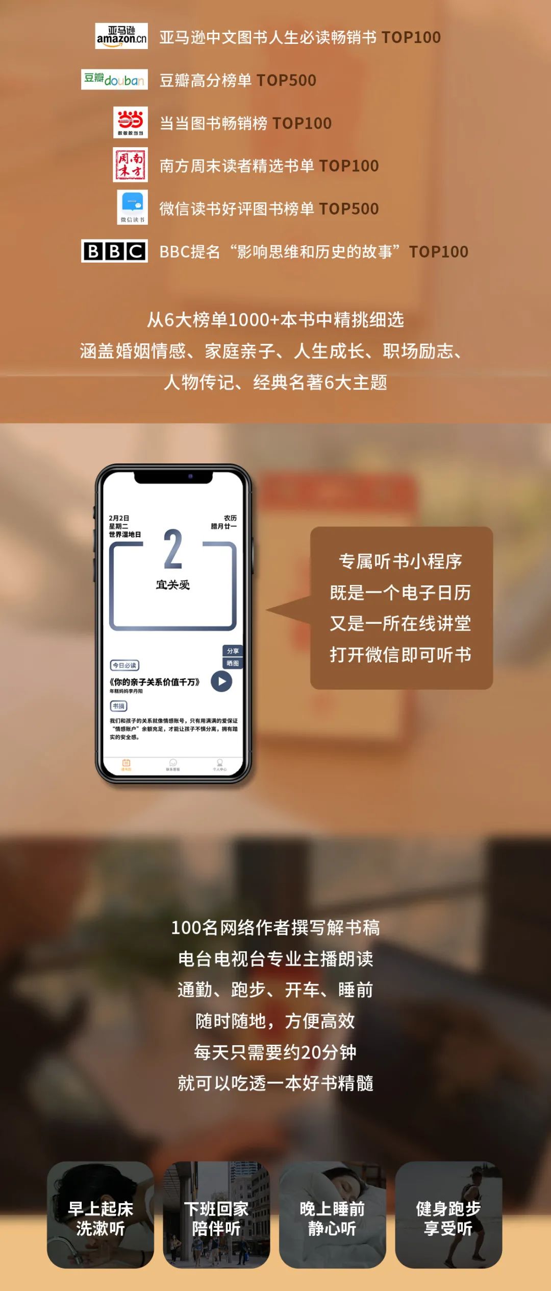 每天只要20分钟,上下班路上,做家务时,睡前休息时,随时随地都可以听完一本好书。