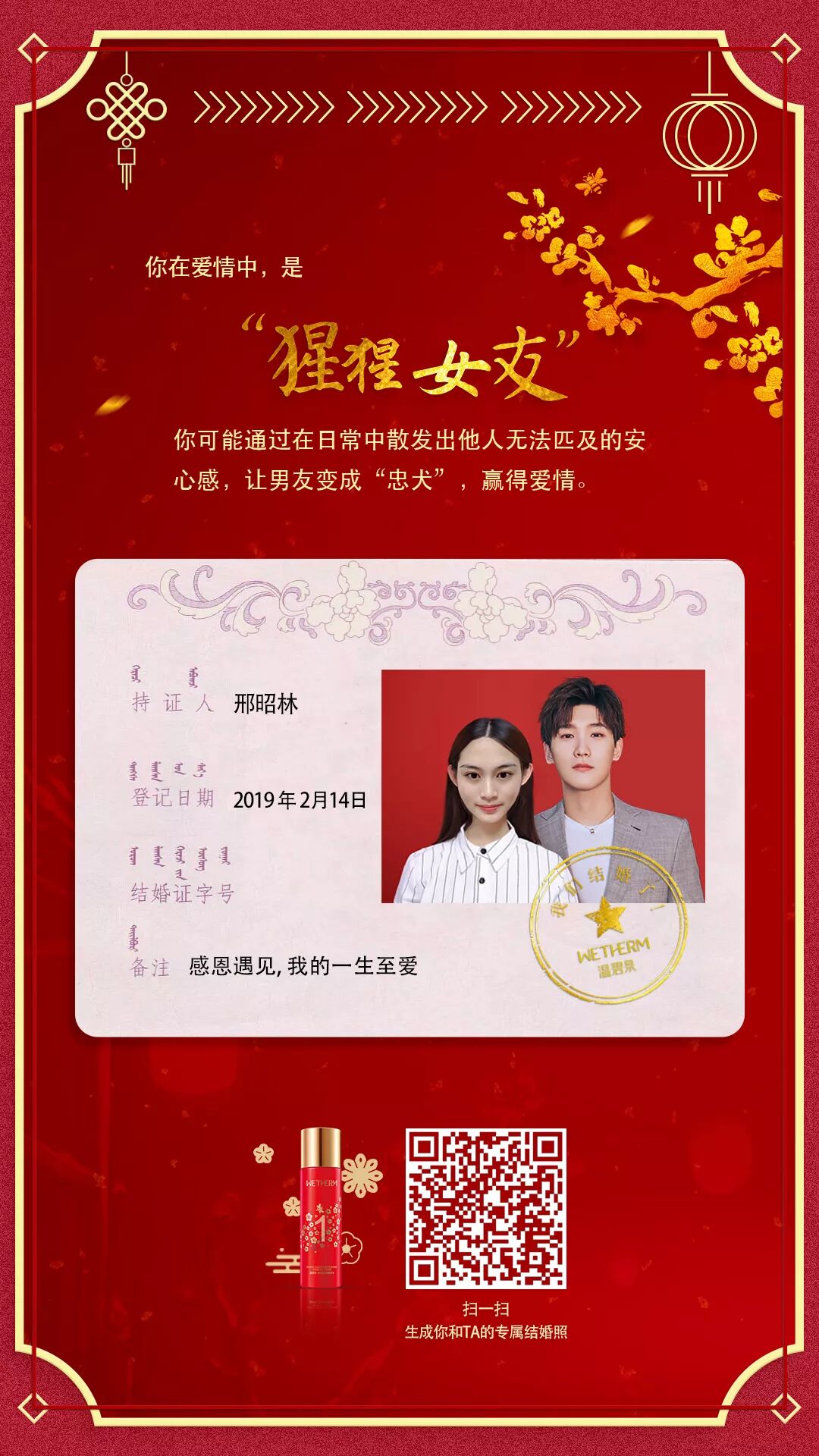 不仅有好玩的测试,在这个H5中还能看到你在爱情中最好的样子。只要上传头像即可生成独家“结婚照”,快来看看你和男票的结婚时的样子吧~