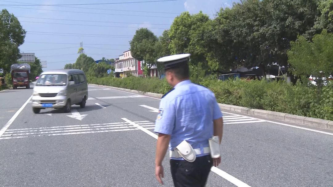 烈日当空,旌阳区交警大队的民警们坚守在各个交通要道。