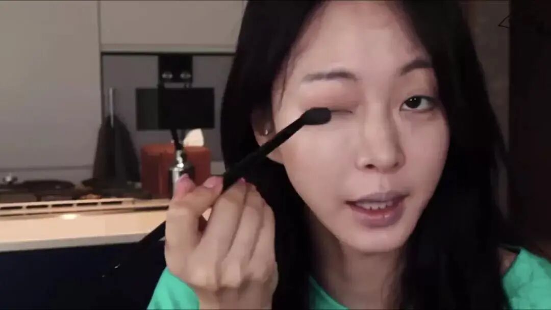 眼妆:日常眼妆姐姐会选择咖啡或棕褐色调一次晕染眼影色与卧蚕色,然后把眼影直接刷在闭眼处,这样刷子同时覆盖上下眼皮了,也不用担心范围过大!