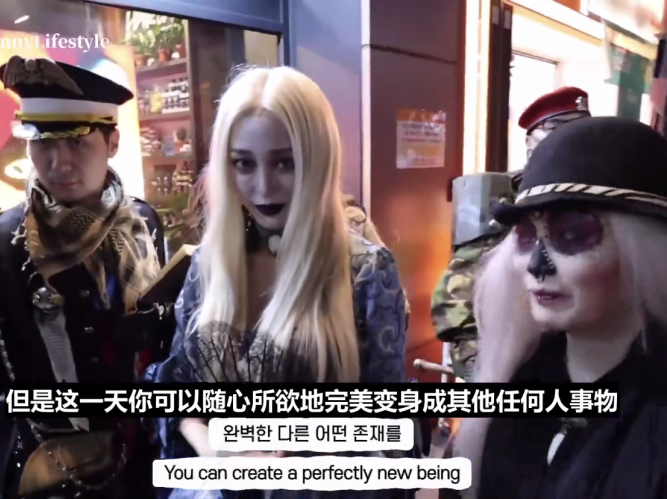她也很喜欢过万圣节的原因是:“一年当中有这么一天,可以不以人类的身份行动,而是妆扮成其他的任何事物,是多么自由的一件事啊”。