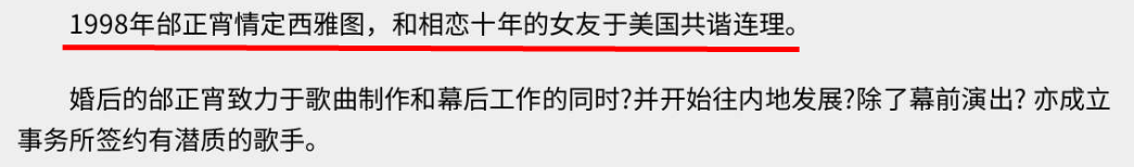 但邰正宵98年就和相恋10年的女友结婚了,虽说和钟汉良确实交情匪浅,但同性恋也压根站不住脚啊...